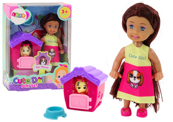 Mini Laleczka Długie Włosy Sukienka Kolorowa Piesek Buda
