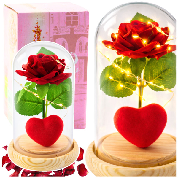 - Wieczna róża w kopule z oświetleniem LED to elegancki i symboliczny prezent, który wyrazi najgłębsze uczucia i doda wyjątkowego charakteru każdemu wnętrzu. Pod wpływem subtelnego światła LED tworzy magiczną atmosferę.